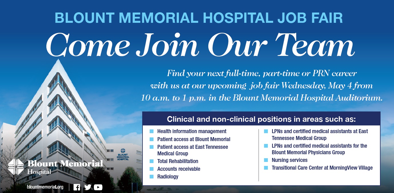 Blount Memorial Hospital On Twitter Job Fair This Wednesday Full Time Part Time Amp Prn Jobs On The Spot Interviews Apply In Person Discuss Your Qualifications W Our On Site Hiring Specialists Clinical Amp Non Clinical Positions Available